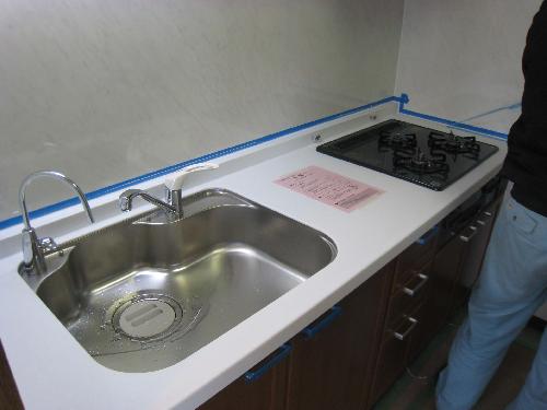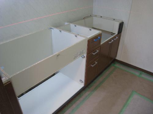 吊り戸棚との色の雰囲気を揃える事が可能になりました。