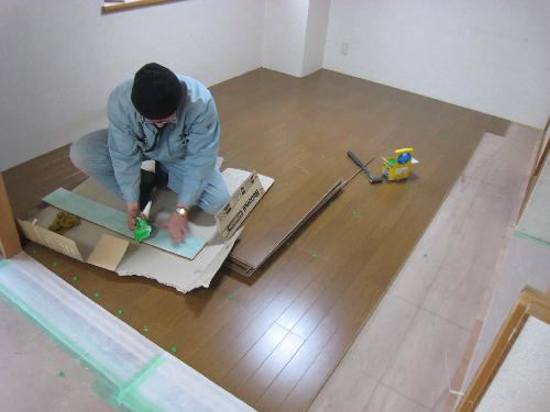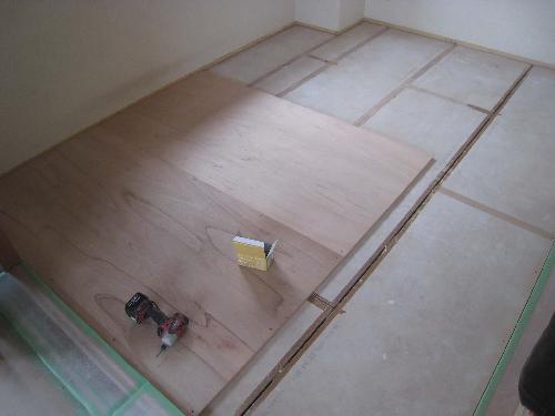 高さ調整には、合板を使用し、隣りの部屋との床高さを揃えました。