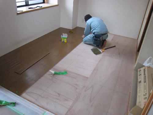 畳を剥がした所、畳の下地は、置き床工法だった為、