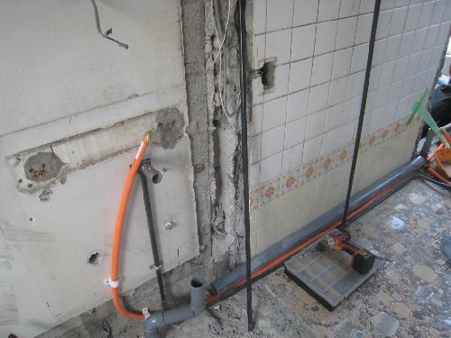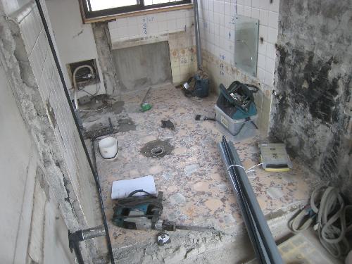 既存の状況と、解体工事及び配管工事の状況です。