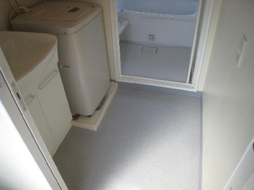 洗面化粧台と洗濯機パンを設置して完了。