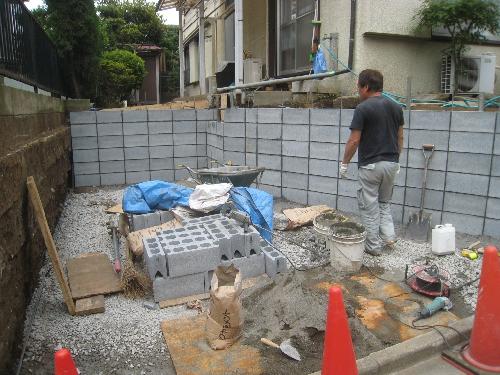 隣地境界部分は既存大谷石とブロックを撤去して、