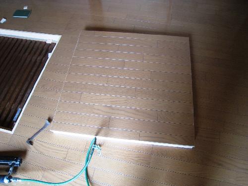 掘り炬燵の框の廻りに見切り枠を入れて、フタも現地で作りました。